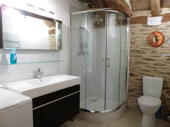 – Salle d’eau : cabine de douche, WC, lave linge, sèche cheveux