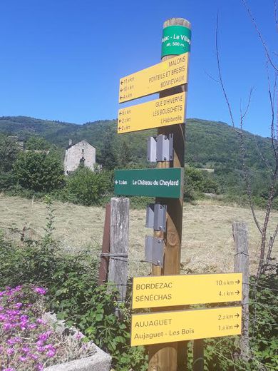 Trois ou quatre nouveaux poteaux de signalisation ont été plantés dans le village et à ses entrées, indiquant les multiples balades que l’on peut faire au départ d’Aujac. Il y en a pour tous les niveaux, des circuits courts ou longs, des diagonales en direction de l’Ardèche ou de la Cèze ou des randonnées permettant de rejoindre les villages avoisinants par les vallées.