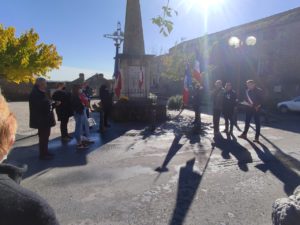Nous étions une vingtaine de personnes et quelques enfants à s’être rassemblées pour un moment de recueillement devant le monument aux morts autour de notre maire Firmin Peyric et en présence du « Souvenir Français » pour honorer le devoir de mémoire dû aux combattants morts pour la France.