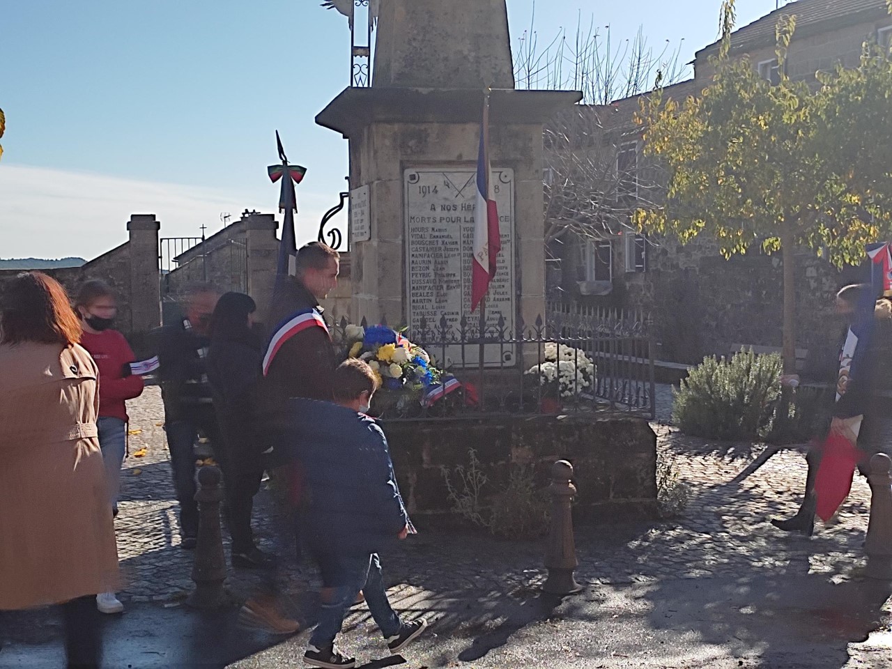Nous étions une vingtaine de personnes et quelques enfants à s’être rassemblées pour un moment de recueillement devant le monument aux morts autour de notre maire Firmin Peyric et en présence du « Souvenir Français » pour honorer le devoir de mémoire dû aux combattants morts pour la France.